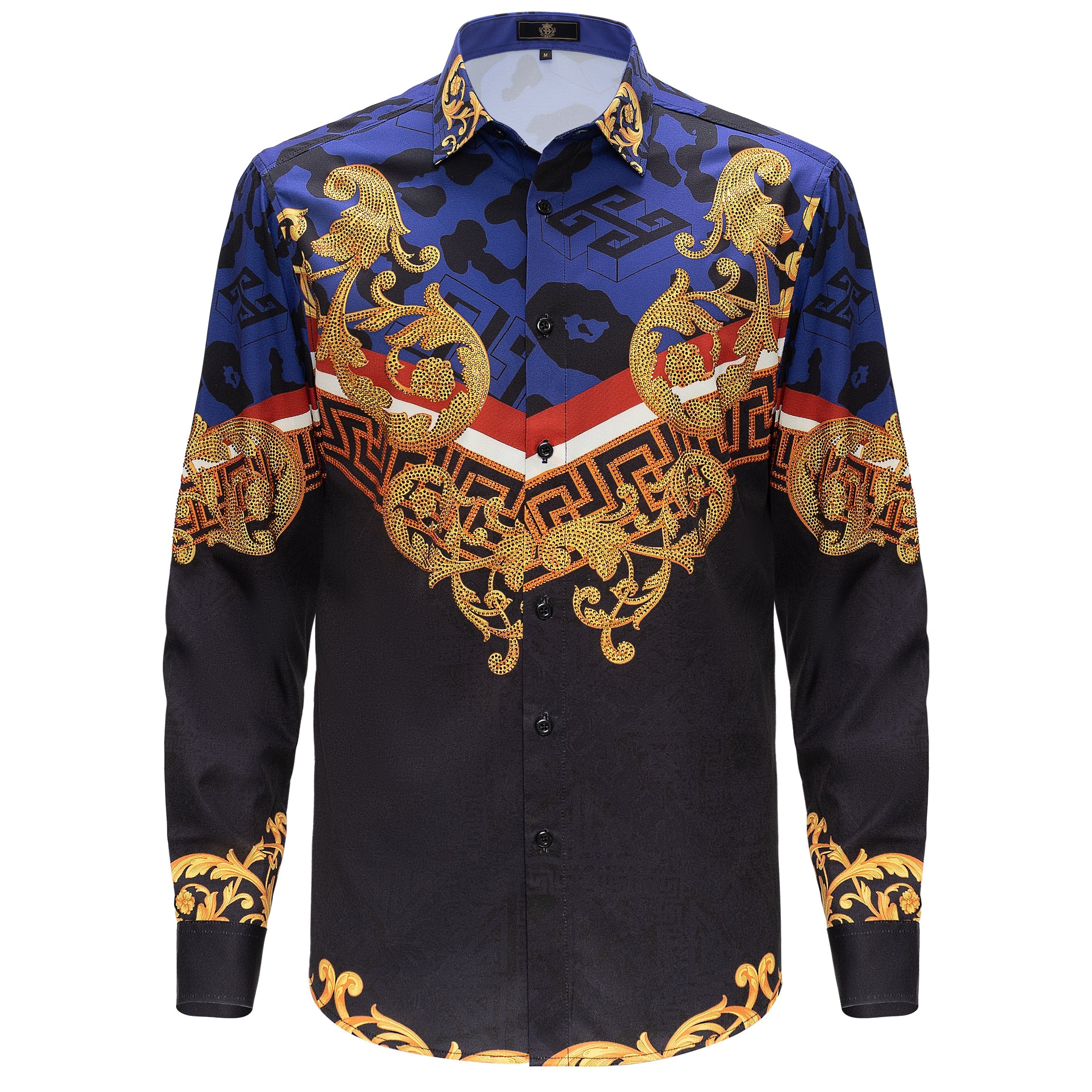 PrestigePrestige White Royal Gold Leaf Short Sleeve Button Up Shirt