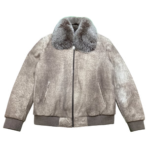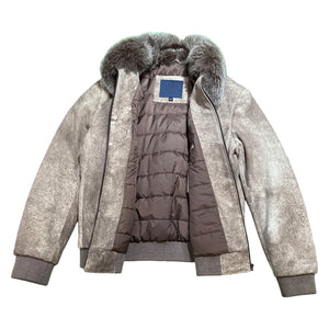 Barya NewYork Beige Fox Fur Collar Bomber Jacket