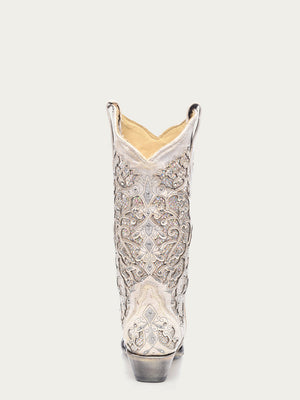 Corral Women’s White Glittered Inlay and Crystal Snip-Toe Wedding Cowboy Boot