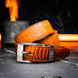 ALESSIO BELT – Genuine Ostrich & Ostrich Leg Exotic Belt