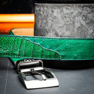 ALESSIO BELT – Genuine Ostrich & Ostrich Leg Exotic Belt