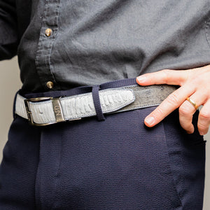 ALESSIO BELT – Genuine Ostrich & Ostrich Leg Exotic Belt