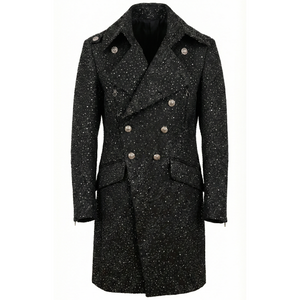 Introducing the Angelino Crystal Noir Stardust Overcoat, a masterpiece of refined elegance designed for the discerning gentleman. This sophisticated outerwear piece seamlessly blends timeless tailoring with contemporary luxury, featuring a striking noir palette enhanced by subtle crystalline detailing that catches light with understated brilliance. The overcoat's structured silhouette provides a commanding presence while maintaining impeccable comfort, making it an essential addition to any elevated wardrobe. Whether layered over formal attire or paired with smart-casual pieces, this versatile coat elevates your ensemble with an air of cosmopolitan sophistication. Crafted with meticulous attention to detail, the Angelino Crystal Noir Stardust Overcoat is the ultimate statement piece for those who appreciate the finer things in fashion.
