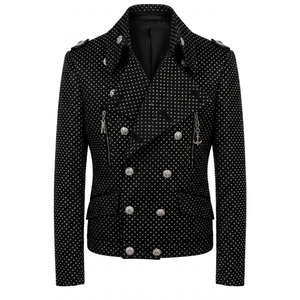 The Angelino Crystal Obsidian Monarch Jacket combines sophisticated style with premium craftsmanship. Featuring a striking obsidian finish and crystal-inspired detailing, this jacket delivers a bold, commanding presence. Perfect for elevating your wardrobe with refined elegance, it transitions seamlessly from casual outings to upscale occasions. The thoughtful design ensures comfort without compromising on that distinctive, head-turning aesthetic that sets you apart.