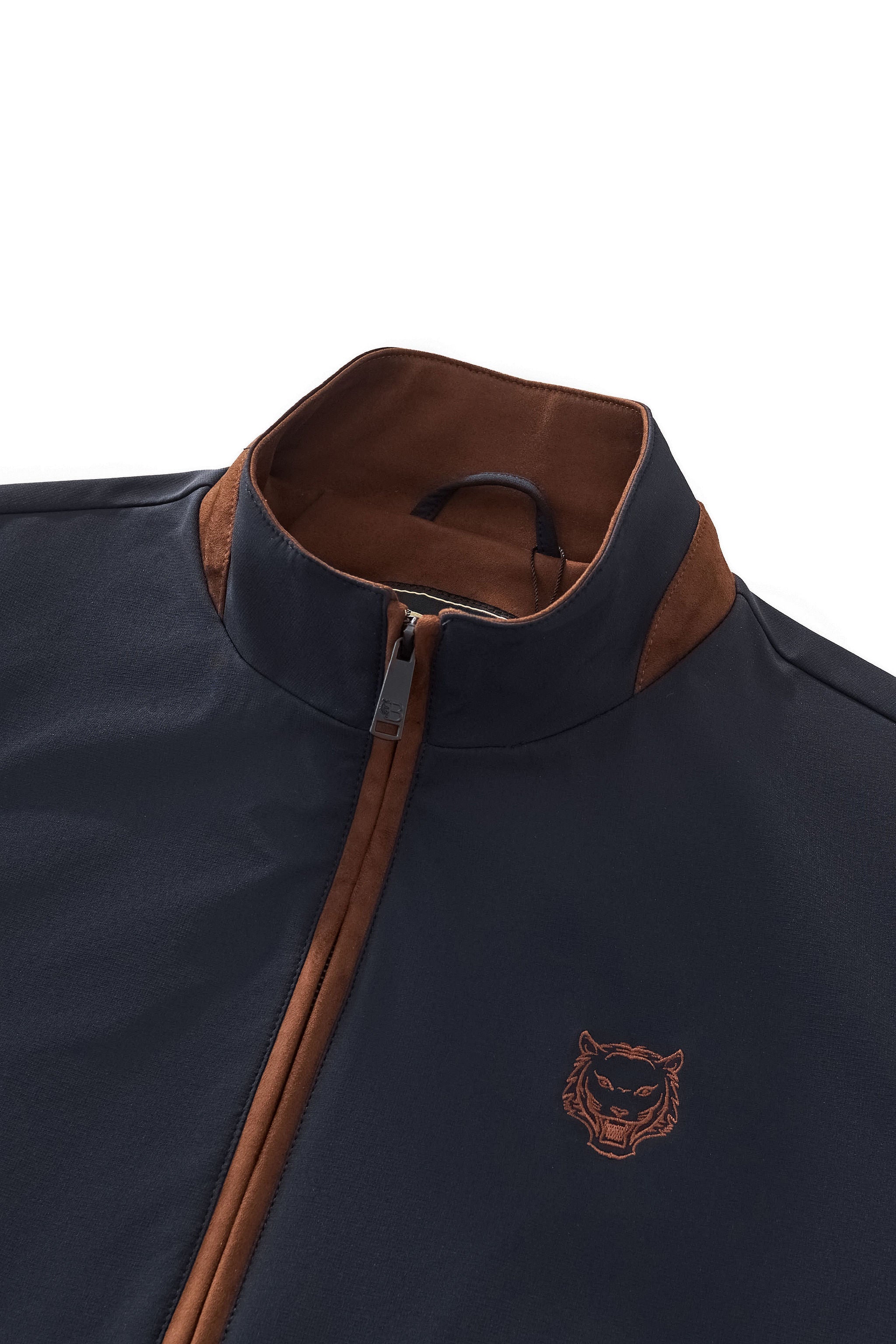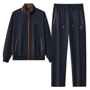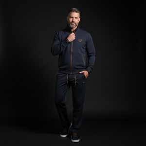 The Apex Trim Performance Set blends athletic functionality with refined Barocco detailing. Crafted from a smooth nylon-stretch blend, the jacket and pant deliver a lightweight, flexible feel ideal for elevated everyday wear. Contrast trim accents and the subtle embroidered crest add a polished finish, giving the set a distinguished yet modern street-luxury identity.