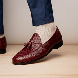 The AUBIERE is our classic fully genuine ostrich tassel loafers that have made their way as a best seller. They feature a beautiful polished hand finish, easy slip-on application, and a full leather outsole. Dress these up with your favorite jeans, slacks, or shorts for a sophisticated look.