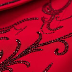 - Tonal scrollwork pattern across front, back, and sleeves