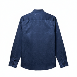 Elevate your wardrobe with this distinguished bespoke navy blue paisley button-up shirt, a timeless piece that seamlessly transitions from boardroom to weekend gatherings. Crafted with meticulous attention to detail, the intricate paisley pattern adds visual depth and character while maintaining an air of refined elegance. The classic navy foundation ensures versatility, pairing effortlessly with tailored trousers, casual denim, or layered under sweaters. Premium construction and thoughtful design make this shirt a sophisticated staple for the discerning gentleman who values both style and substance.