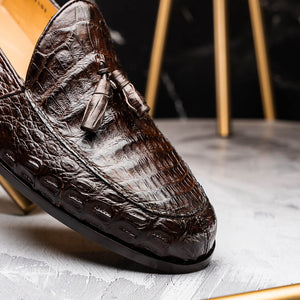 The BIANCHI is our classic fully genuine caiman crocodile tassel loafers that have made their way as a best seller. They feature a beautiful polished hand finish, easy slip-on application, and a full leather outsole. Dress these up with your favorite jeans, slacks, or shorts for a sophisticated look.