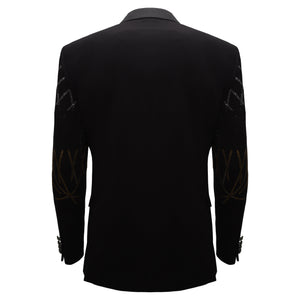 Step onto the runway or red carpet with the Bold Grace Blazer, a striking statement piece designed for bold singers, artists, and performers. Featuring an embellished peak lapel and intricate crystal-adorned line patterns, this blazer exudes confidence and luxury. Its premium stretch fabric ensures comfort and unrestricted movement, letting you command attention with every step. Perfect for performances, premieres, and any event where you want to shine with sophistication.