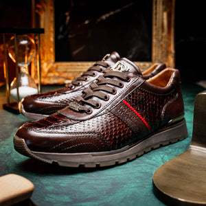 The BRESCIA is our street inspired python and classic calfskin fashion sneaker rocking a gum rubber sole with a two tone hand painted finish. Dress these up with your favorite jeans, slacks, or shorts for a striking look.