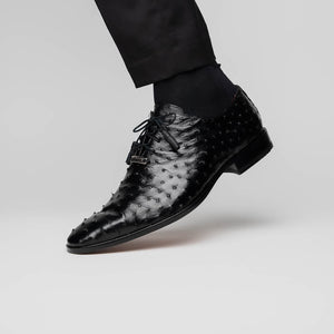 The CRISS is our exotic take on a classic dress oxford, featuring tasseled laces, fully wrapped genuine ostrich quill, and leather outsoles. Dress these up with your favorite jeans or slacks for a stand out look.