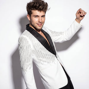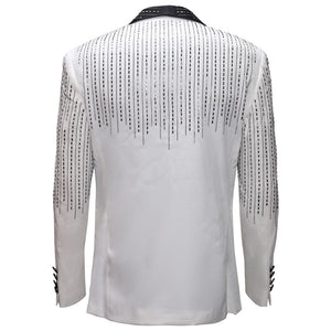 Elevate your formal wardrobe with the Deluxe Demeanor Blazer, a striking fusion of sophistication and show-stopping design. Featuring cascading vertical embellishments along the sleeves and shoulders, this blazer delivers a sleek, modern silhouette that commands attention. The contrasting black shawl lapel adds a refined touch, making it perfect for galas, red carpet events, and unforgettable stage performances.