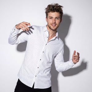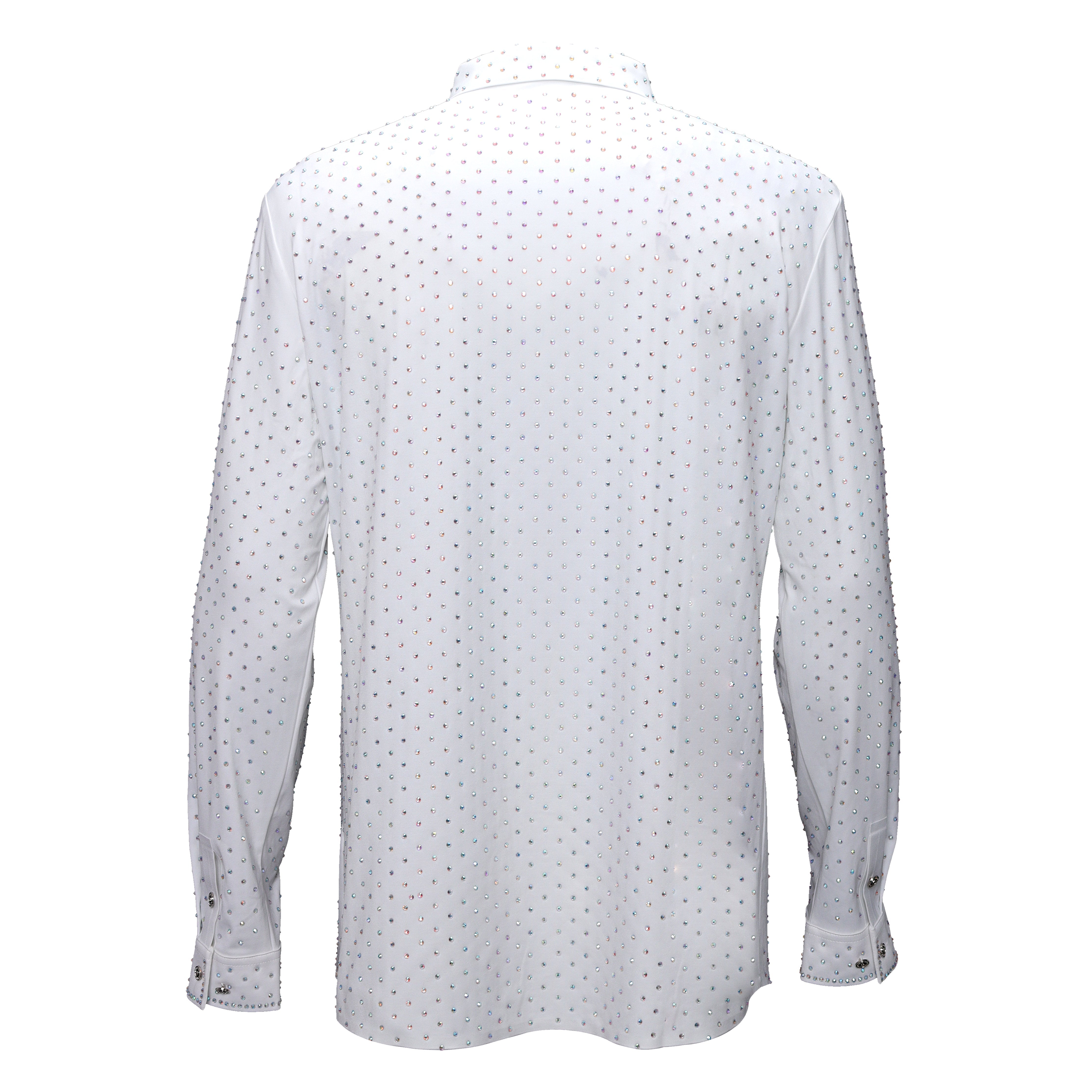 Step into the spotlight with the Downtown Nights Button-Up Shirt, where modern sophistication meets urban edge. Crafted with our innovative stitchless technology, this shirt ensures a sleek, polished look while maximizing your comfort. The breathable fabric allows for optimal airflow, keeping you cool during those bustling nights out. Featuring 4-way stretch, this shirt adapts seamlessly to your every movement, providing unparalleled freedom whether you're at a chic rooftop bar or a downtown gala. The eye-catching rhinestones embellishing the body and sleeves add a touch of bling, making this piece a standout choice for the style-savvy man. Experience the perfect blend of comfort and confidence with the Downtown Nights Button-Up Shirt. your go-to attire for unforgettable evenings. Embrace the night with an attitude that commands attention.