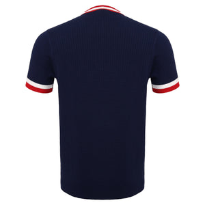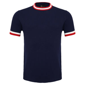 A sophisticated blend of modern style and classic comfort, the Elite Contrast Ribbed Tee is a must-have for any wardrobe. Featuring a finely ribbed texture and striking contrast trim details, this short-sleeve knit tee offers both versatility and elegance.