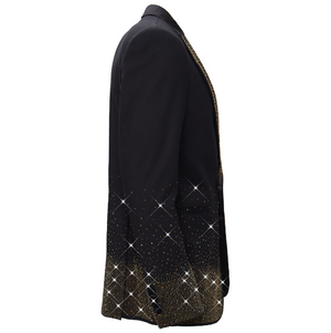 Step into the spotlight with the Elite Ensemble blazer, a luxurious piece designed for those who demand sophistication with a touch of brilliance. Adorned with sparkling embellishments that cascade from the lapel to the sleeves and hem, this blazer radiates elegance and stage-ready charisma. Perfect for galas, performances, or high-profile events, it combines a sleek fit with statement-making detail to ensure all eyes are on you.