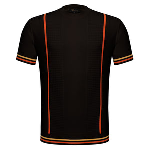 Refine your wardrobe with the Barocco Elite Knit Tee, crafted for effortless sophistication and modern comfort. Featuring a premium textured knit design, this tee is tailored for a sleek fit while ensuring breathability and ease of movement. The bold contrast stripe detailing on the sleeves and hem adds a dynamic edge, making it the perfect piece for both casual and smart-casual styling.