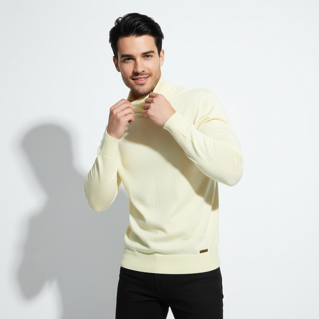 A refined classic, the Essence Elegance turtleneck embodies understated sophistication. Crafted in a soft and lightweight knit, this versatile piece delivers warmth, breathability, and a luxurious hand feel, making it a year-round essential. Its clean silhouette ensures it layers effortlessly or stands alone as a statement of quiet confidence.