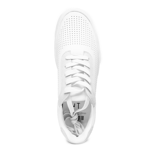 - Smooth white leather upper with breathable perforations