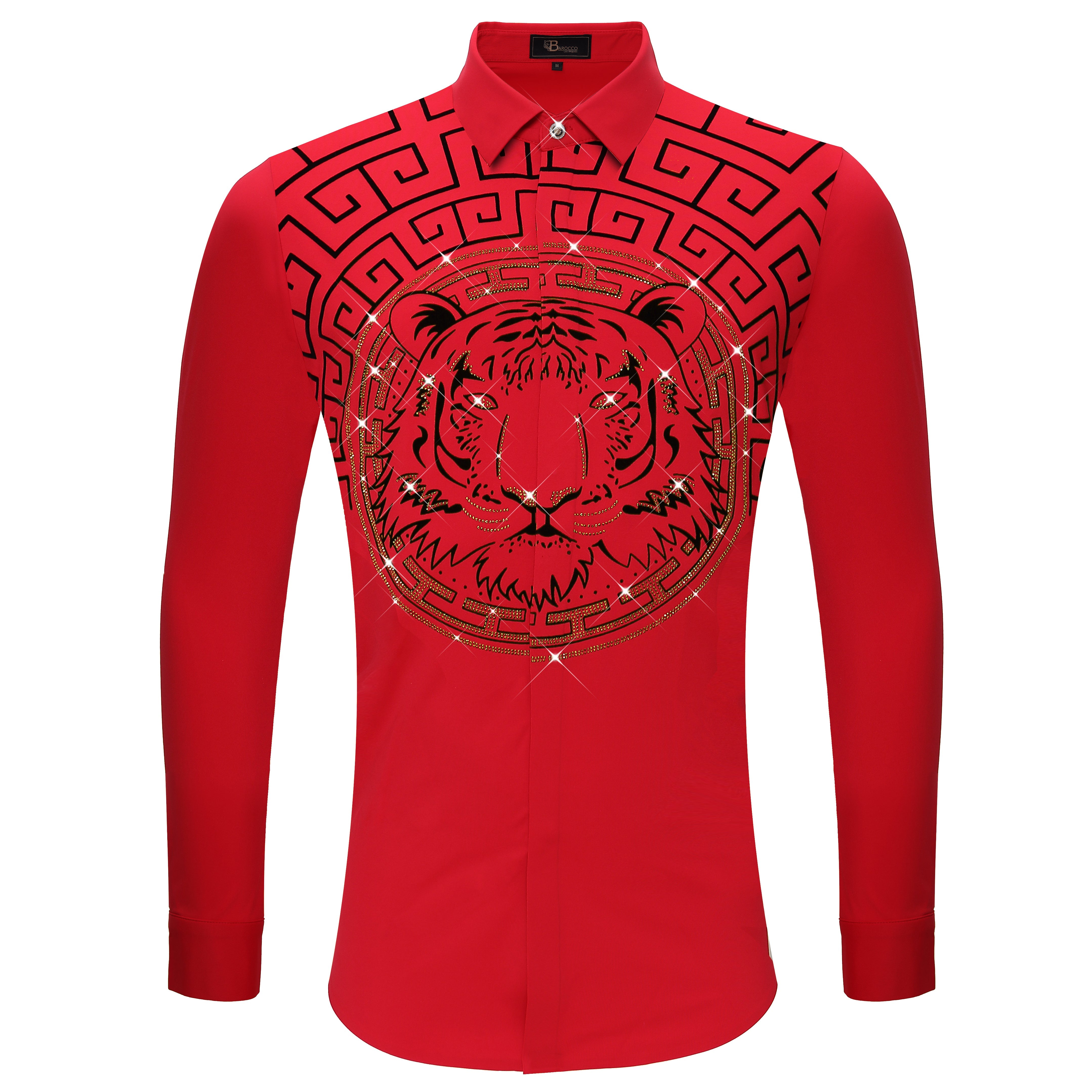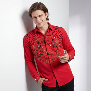 Unleash your bold side with the Fierce Frenzy Button-Up Shirt. Crafted for the modern man who commands attention, this shirt seamlessly combines style and functionality. Designed with 4-way stretch fabric, it offers unparalleled freedom of movement, ensuring you stay comfortable from day to night. Experience the luxury of extra comfort with its breathable fabric, making it perfect for any occasion, whether it’s a night out or a casual gathering. The innovative stitchless technology adds a sleek finish, eliminating irritation and enhancing the shirt's refined aesthetic. Adorned with striking rhinestones and a fierce tiger face on the chest, this shirt is not just an outfit; it's a statement. Stand out and embrace your inner strength with the Fierce Frenzy Button-Up Shirt—where masculine style meets contemporary design.