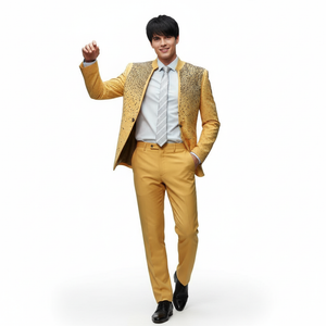 Step into the spotlight with the Golden Radiance Crystal Suit Set β a dazzling ensemble designed for those who embrace bold elegance. The blazer, drenched in golden fabric and crowned with radiant crystal embellishments, commands attention with every step. Its structured silhouette and single-button closure exude confidence, while the coordinating trousers complete the look with sleek precision. Ideal for red carpet moments, on-stage brilliance, or elite celebrations, this set is your ultimate expression of luxury and charm.