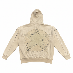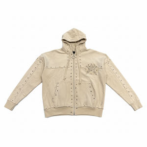 Hudson Beige Crystal Studded Zip-Up Hoodie