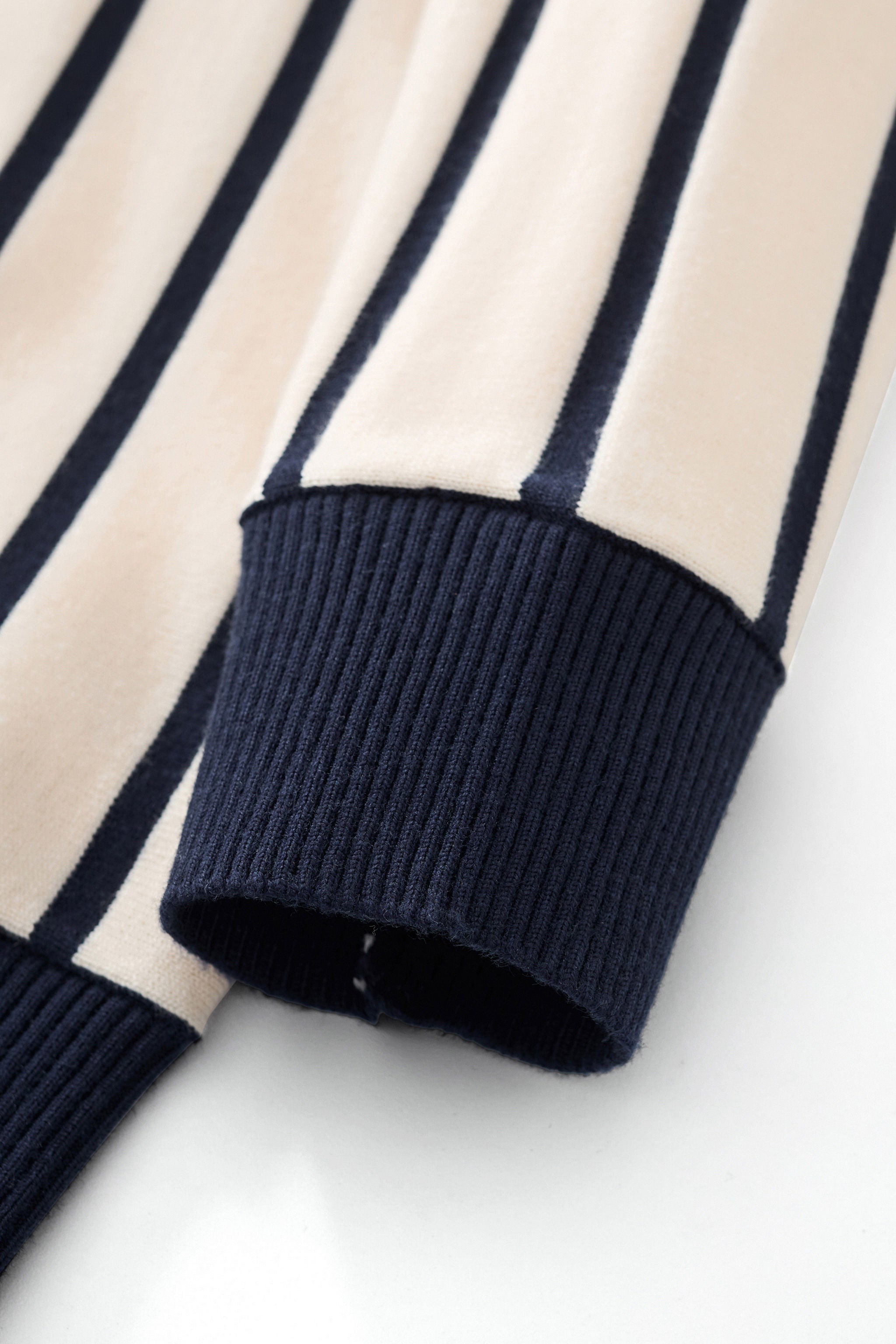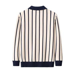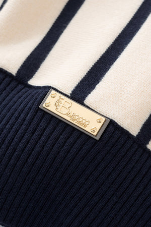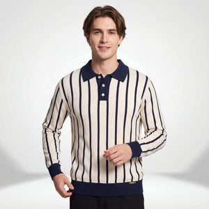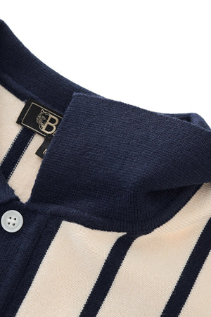 The Imperial Stripe Knit Polo LS merges bold design with refined tailoring. Crafted from a smooth viscose-blend knit, it features sharp vertical striping framed by a solid contrast collar and placket. The structured drape and luxurious texture make it an essential statement piece within Barocco’s elevated streetwear aesthetic — timeless yet distinctly modern.