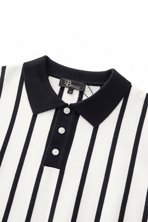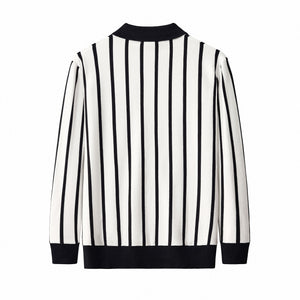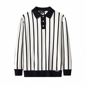 The Imperial Stripe Knit Polo LS merges bold design with refined tailoring. Crafted from a smooth viscose-blend knit, it features sharp vertical striping framed by a solid contrast collar and placket. The structured drape and luxurious texture make it an essential statement piece within Barocco’s elevated streetwear aesthetic — timeless yet distinctly modern.