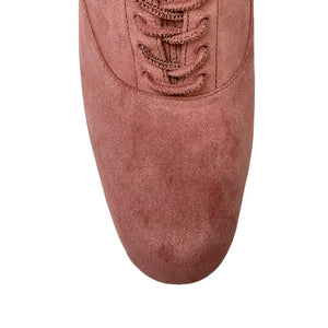 Jeffrey Campbell Dusty Pink Suede Victorian Lace-Up Knee-High Boots with Cuff
