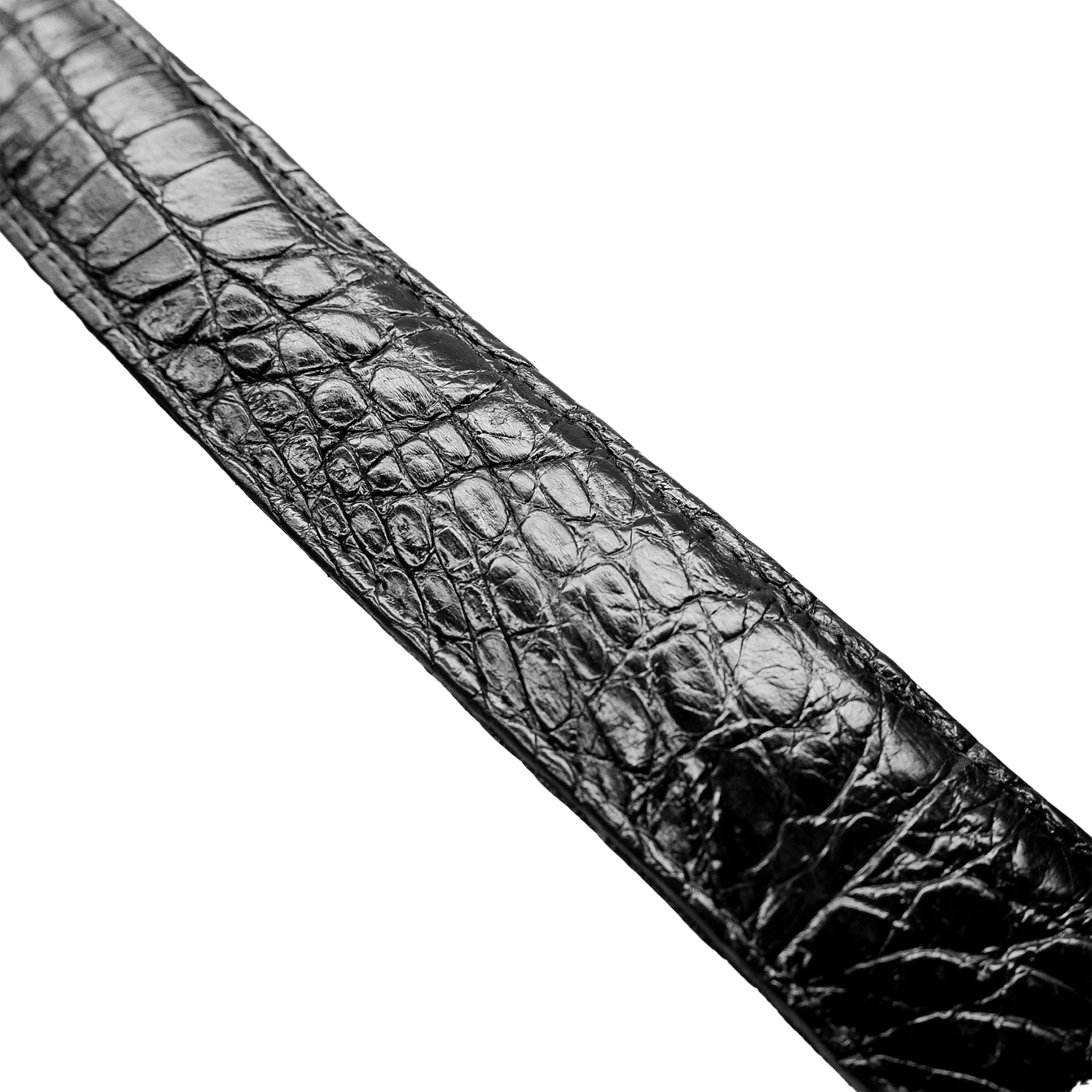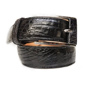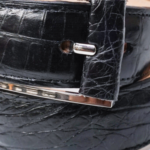 Elevate your wardrobe with the unmatched luxury of the Kashani Black Full Skin Crocodile Belt. Crafted from genuine full skin crocodile leather, this belt offers a bold, refined finish that commands attention. The rich black tone enhances its exotic texture, making it a statement accessory for any high-end look.