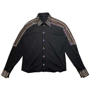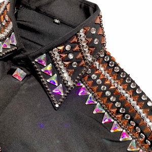 Kashani Gold/Black Hyper Crystal Zip Up Shirt