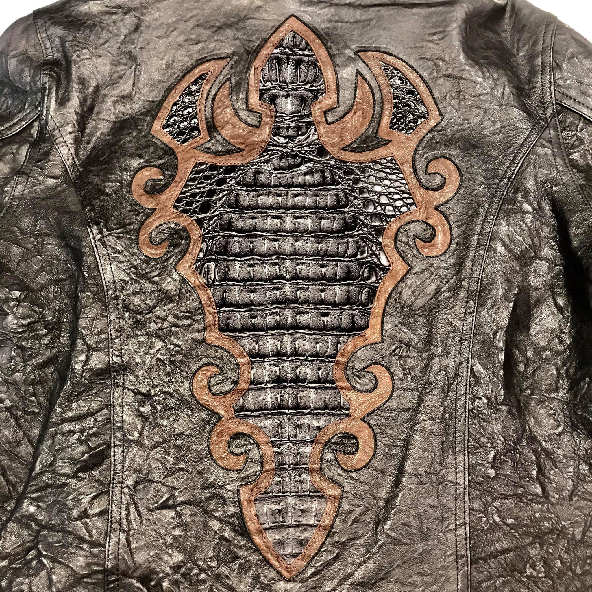 Kashani Black Horn-Back Alligator Stitched Bomber Jacket