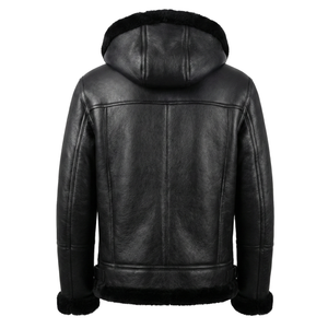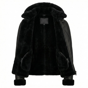 Kashani Black Shearling Hooded Jacket w/Detachable Hood