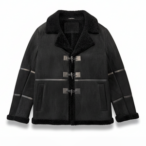 Elevate your winter wardrobe with the Kashani Black Shearling Toggle Coat, a timeless piece that seamlessly blends luxury and practicality. Crafted from premium shearling, this sophisticated coat delivers exceptional warmth while maintaining an effortlessly refined silhouette. The signature toggle closures add a classic touch, making it an ideal choice for both formal occasions and everyday elegance. Its rich black hue pairs beautifully with any ensemble, from tailored trousers to casual denim. Experience the comfort of natural shearling lining combined with impeccable craftsmanship—a versatile investment piece that transcends seasonal trends and elevates any look with understated sophistication.