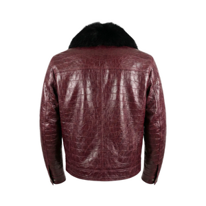 Kashani Burgundy Embossed Alligator Fox Biker Jacket