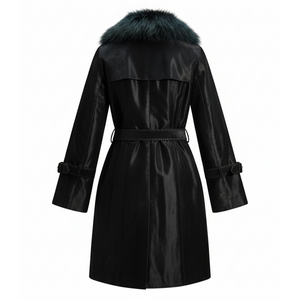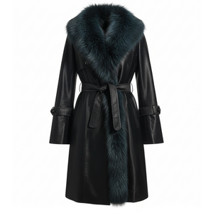 Elevate your outerwear collection with this sophisticated Kashani Green Cavalino Pony Hair trench jacket, a statement piece that seamlessly blends timeless tailoring with luxurious textures. Crafted from premium cavalino pony hair in a rich green hue, this jacket features an elegant fox fur trim that adds an undeniable touch of refinement and glamour. The classic trench silhouette provides versatile styling options, transitioning effortlessly from professional settings to upscale evening occasions. The sumptuous fur detailing frames the neckline and cuffs, creating a polished, high-fashion aesthetic that commands attention. Perfect for the discerning individual who appreciates quality craftsmanship and distinctive design, this jacket serves as a transformative layer that elevates any ensemble with understated luxury and contemporary elegance.
