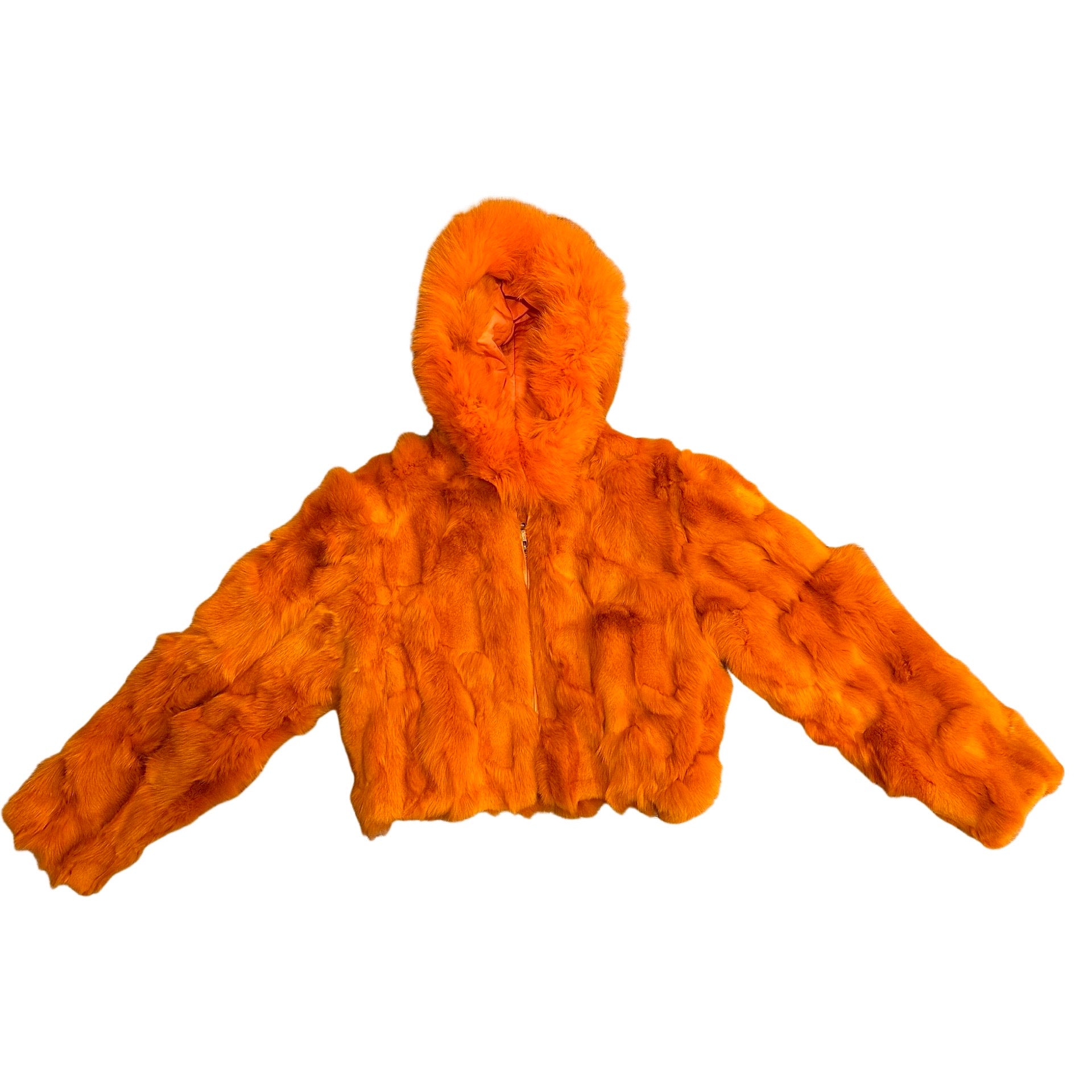Kashani Ladies Orange Hooded Fox Fur Coat