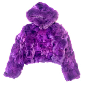 Kashani Ladies Purple Hooded Fox Fur Coat