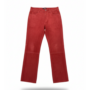 Kashani Men's Cherry Red Suede Straight Cut Pants