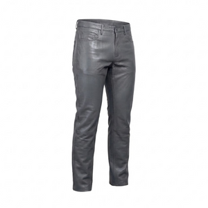 Kashani Men's Grey Lambskin Straight Cut Leather Pants