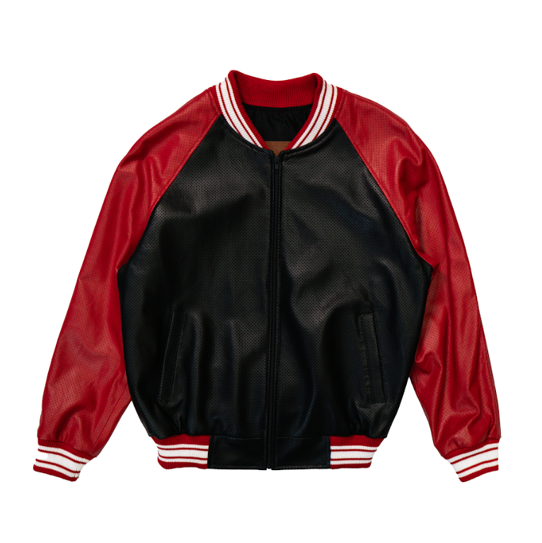 Kashani Red/Black Perforated Lambskin MA-1 Bomber Jacket