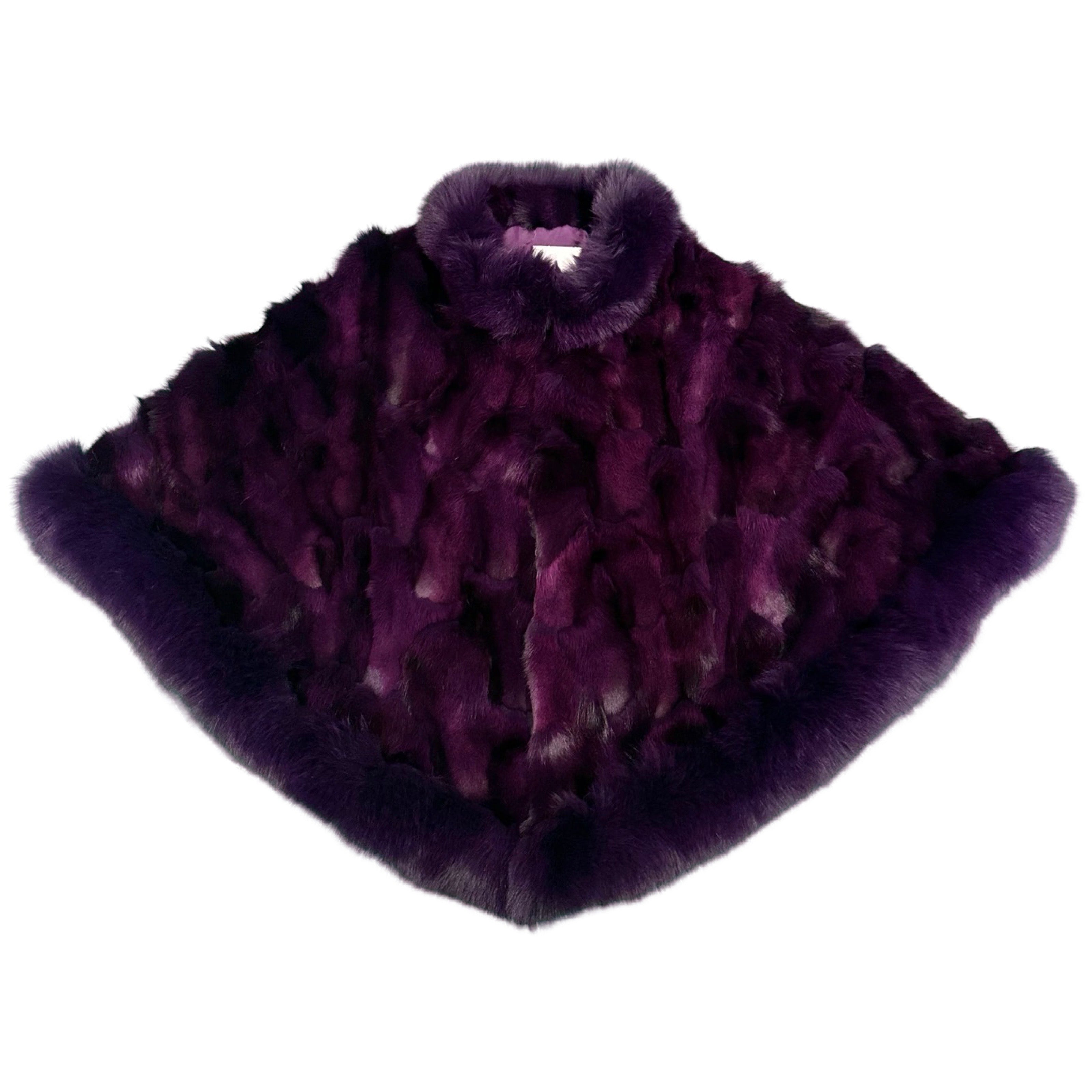 Kashani Women's Purple Fox Fur Poncho Adorn yourself with the luxurious Kashani Women's Purple Fox Fur Poncho. Experience the elegant style and exclusivity of this statement piece. With its soft fur and stylish design, you'll look and feel like royalty. Perfect for any occasion, this poncho is a must-have for any fashion-forward individual. Indulge in the decadent comfort and sophistication of the Kashani poncho and elevate your wardrobe.