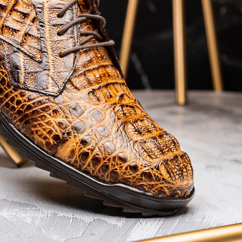The KRATOS is our stunning genuine caiman crocodile fashion sneaker boasting an uptempo silhouette and hand painted finish. Dress these up with your favorite slacks for a sporty dress look or pair them with jeans or shorts for a casual but clean look.
