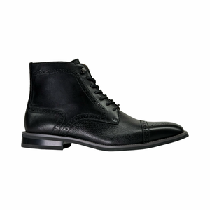 The La Milano Jaxon Black Leather Boot exemplifies timeless craftsmanship and refined style. Constructed from premium black leather, this boot delivers both durability and elegance for the discerning gentleman. The Jaxon's versatile design transitions seamlessly from professional settings to casual occasions, making it an essential addition to any wardrobe. With its structured silhouette and quality construction, this boot offers reliable comfort and support throughout the day. Whether paired with tailored trousers or denim, the La Milano Jaxon stands as a sophisticated choice that elevates your personal style while maintaining the understated confidence of classic menswear.