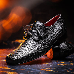 The Leonardo is our fully wrapped genuine caiman crocodile dress derby's featuring tasseled laces and a polished hand finish that makes the crocodile texture pop. Dress these up with your favorite jeans or slacks for a stunning look.
