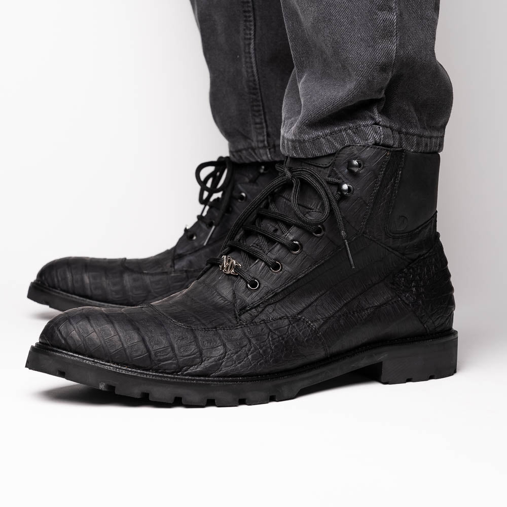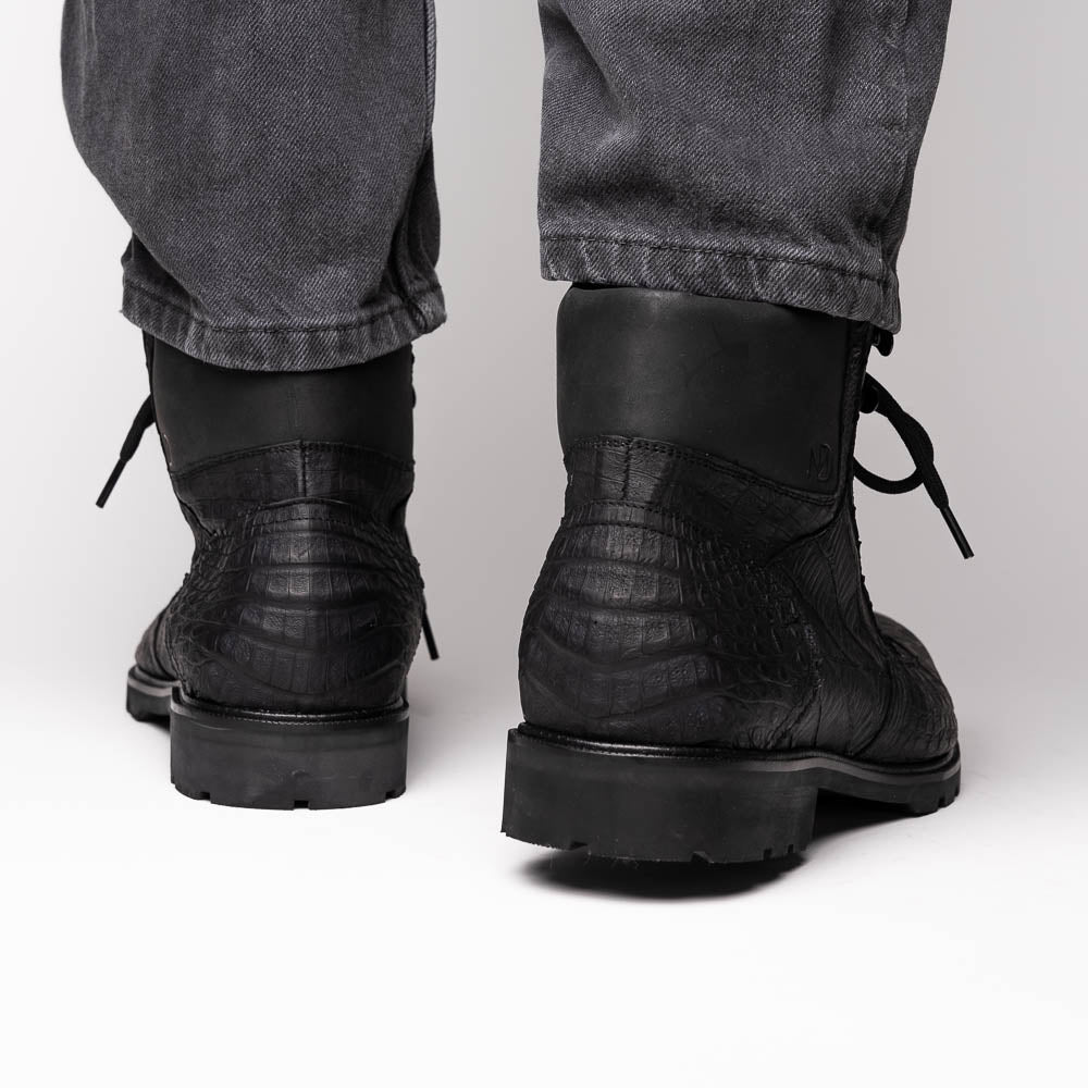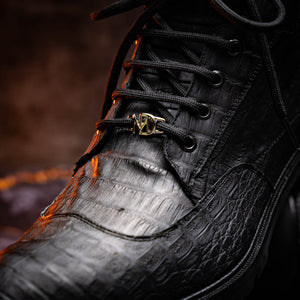 The LEONI is our rugged-luxury boot, handcrafted from genuine caiman belly leather for a bold, modern profile. Designed for men who want exotic character with everyday versatility, this lace-up boot features clean caiman belly panels, reinforced construction, and a padded collar that adds comfort without sacrificing attitude. Finished with a durable rubber lug sole and full leather lining, the LEONI delivers confident style and reliable traction whether you dress it up with tailored looks or down with denim.