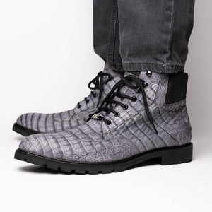 The LEONI is our rugged-luxury boot, handcrafted from genuine caiman belly leather for a bold, modern profile. Designed for men who want exotic character with everyday versatility, this lace-up boot features clean caiman belly panels, reinforced construction, and a padded collar that adds comfort without sacrificing attitude. Finished with a durable rubber lug sole and full leather lining, the LEONI delivers confident style and reliable traction whether you dress it up with tailored looks or down with denim.