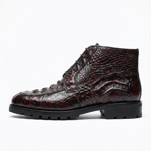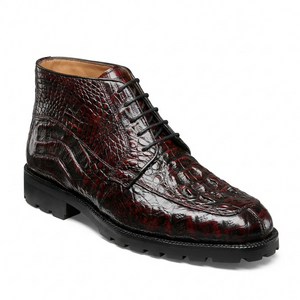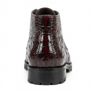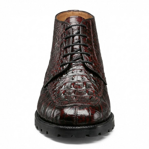 Los Altos Black Cherry Hornback All-Over Crocodile Lace Up Ankle Boots represent the pinnacle of Western craftsmanship and refined style. Featuring authentic hornback crocodile leather across the entire boot, these ankle-height boots showcase a striking black cherry finish that transitions beautifully in natural light. The classic lace-up design offers secure, adjustable fit while maintaining an elegant silhouette perfect for both formal occasions and elevated casual wear. Meticulously constructed with premium materials and attention to detail, Los Altos boots deliver exceptional durability and timeless appeal. Whether you're making a statement at a special event or investing in a versatile wardrobe staple, these crocodile boots combine luxury craftsmanship with enduring sophistication.