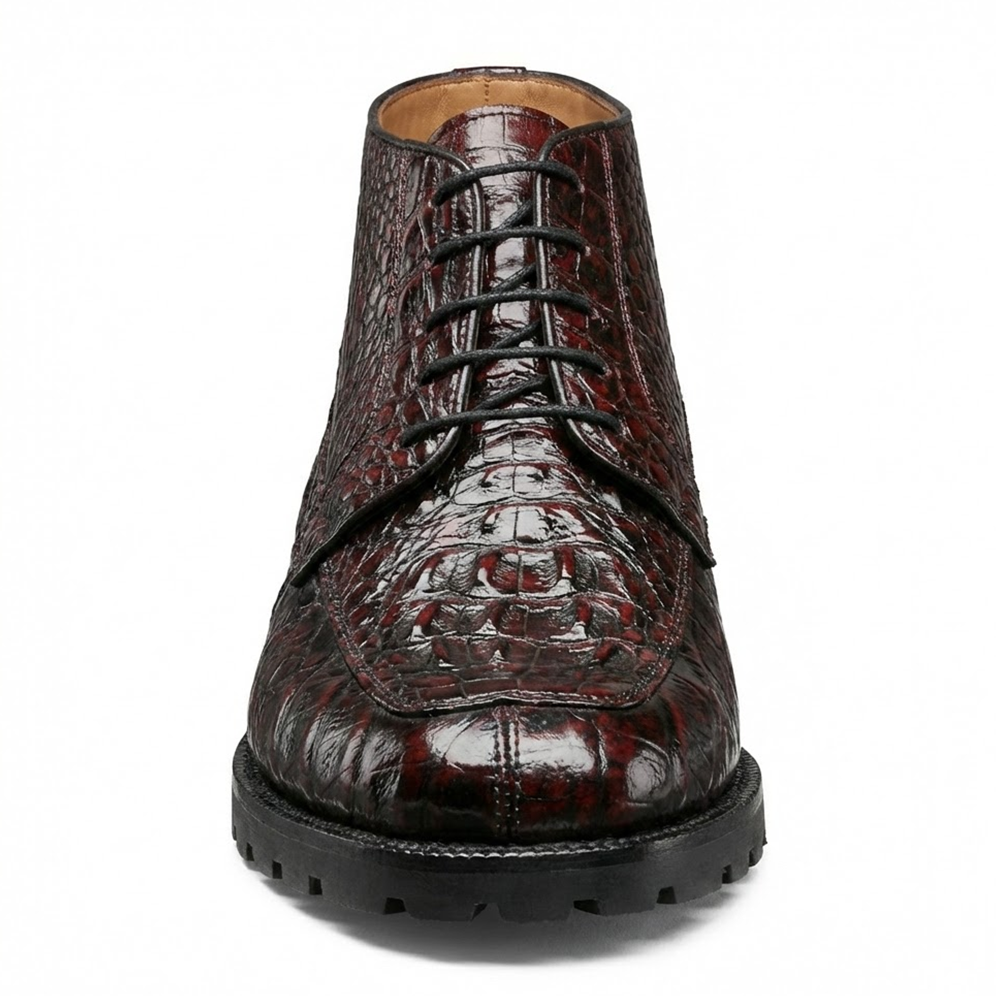 Los Altos Black Cherry Hornback All-Over Crocodile Lace Up Ankle Boots