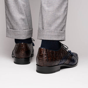 The LUCIANO is our classic two-tone wingtip style dress derby's featuring genuine caiman, tasseled laces, and a polished hand finish that makes the texture pop. Pair these with your favorite dress-wear for a stunning look.